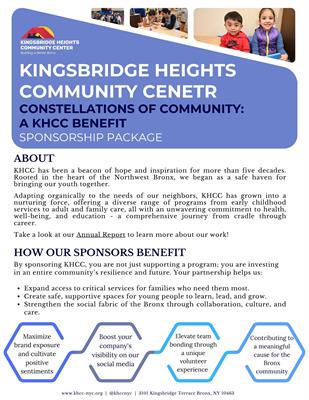 As the Kingsbridge Heights Community Center proudly marks 52 years of service, we invite you to celebrate the strength, resilience, and brilliance of our Bronx community. Hosted at the stylish Meeting Galleries at 10 Grand Central, this unforgettable night will kick off the next chapter of our mission to empower youth and families across the Bronx.