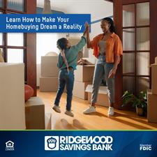 Take the first step toward achieving your dream of homeownership. Click the link https://www.ridgewoodbank.com/home/borrowing/affordable_mortgage to sign up for one of their FREE Virtual Homebuyers Seminars on Thursday, 10/23 and Thursday, 11/20 from 6pm - 8pm.
